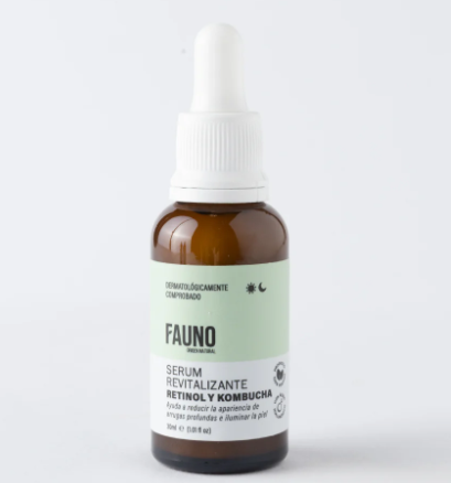 Renovación celular, firmeza y luminosidad visible. El Sérum Revitalizante con Retinol Fauno® está formulado para mejorar la calidad de la piel mediante activos con respaldo dermatológico que actúan sobre los principales signos del envejecimiento cutáneo: textura irregular, líneas finas y pérdida de luminosidad. El retinol, uno de los ingredientes antiedad con mayor evidencia científica, estimula la renovación celular epidérmica, favorece la síntesis de colágeno y contribuye a una piel más firme, uniforme y con menor apariencia de arrugas. Su acción se ve complementada por kombucha, un fermento rico en ácidos orgánicos y compuestos antioxidantes que ayuda a mejorar la luminosidad, fortalecer la barrera cutánea y proteger frente al estrés oxidativo. El ácido hialurónico aporta hidratación profunda al retener agua en la epidermis, mejorando la elasticidad, suavidad y apariencia de la piel, mientras que la manzanilla, fuente de bisabolol y flavonoides, ejerce un efecto calmante y antiirritante, ayudando a minimizar la sensibilidad asociada al uso de retinoides. Gracias a su textura ligera y de rápida absorción, este sérum es ideal para integrarse en rutinas nocturnas de cuidado facial, promoviendo una piel visiblemente más revitalizada, uniforme y luminosa. Beneficios clave:- Estimula la renovación celular.